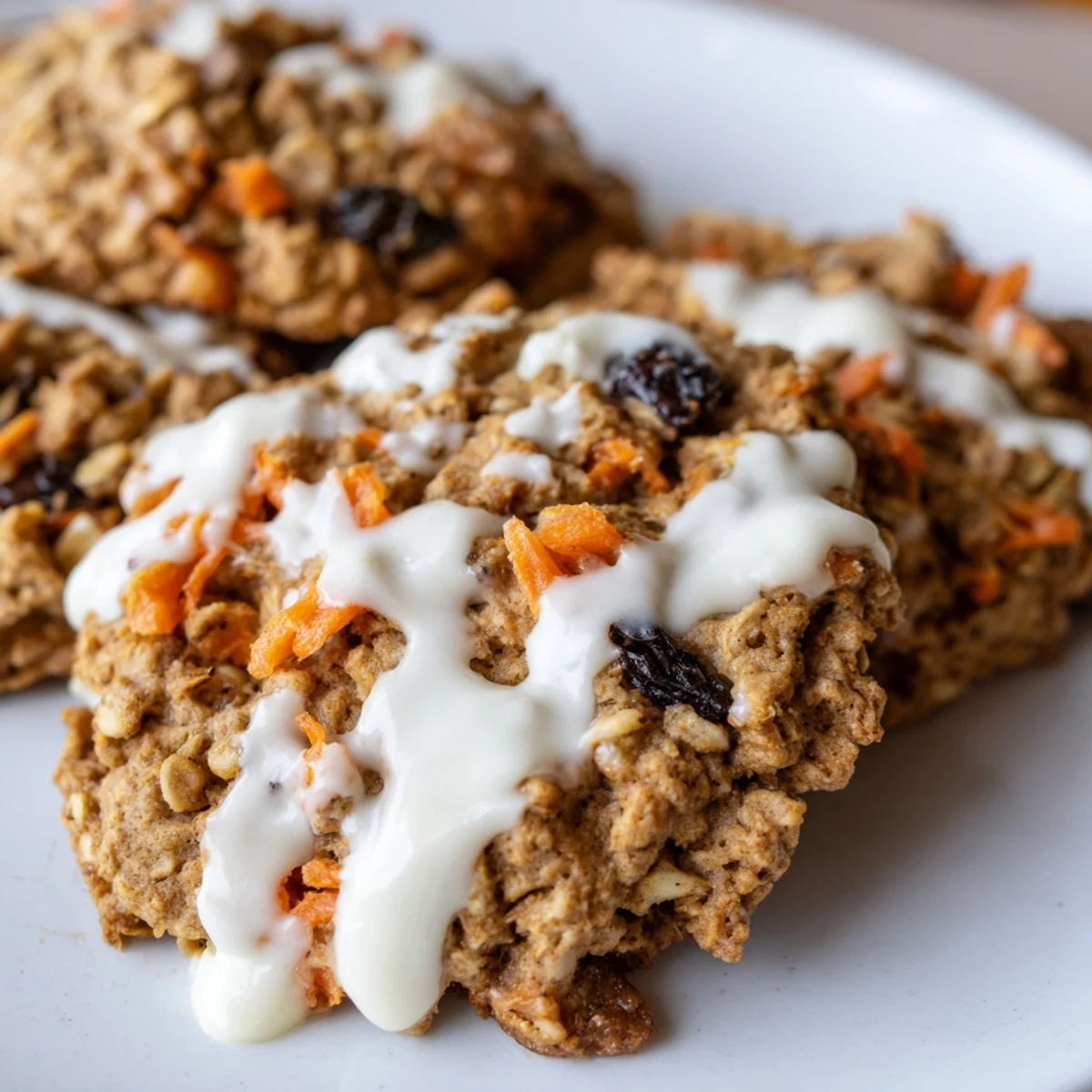 These carrot cake cookies capture everything you love about classic carrot cake in bite-sized form. Each soft, chewy cookie is packed with finely grated carrots, warming cinnamon, nutmeg, and ginger, plus wholesome oats for texture. The optional cream cheese drizzle adds that perfect finishing touch, mirroring the beloved frosting of traditional cake.